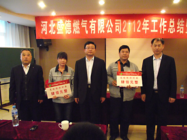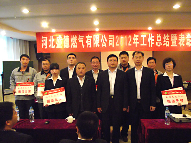 河北盛德燃气有限公司2012年度工作总结暨表彰大会,评选公司先进,对部门先进、公司先进、总经理特别奖获得者进行表彰。