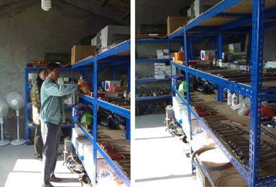 整洁的仓库一角,各种维修工具齐全,拥有一套完整维修流程;
